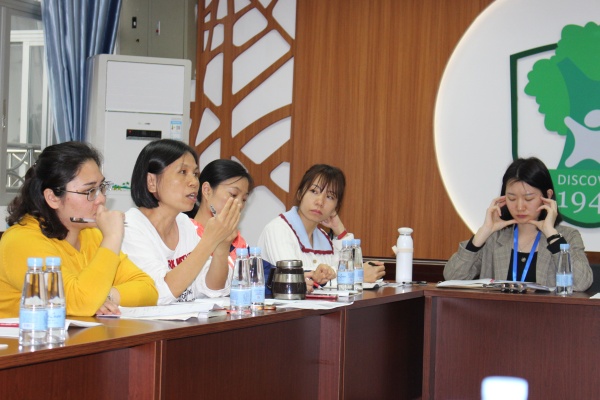 听完两位老师的示范课之后,雪菊老师和全体语文老师进行评课议课。这也是语文教师对于现在课改现状的一次思想的交流和碰撞,这对于各位语文老师来说都是不可多得的学习机会。先是由泳仙老师讲述她的教学设计,雪菊老师表扬了泳仙老师的语文素养,肯定这节课的教学设计,由《一千零一夜》入手,实现了从课内到课外,全书到单篇教学的新课改理念。同时也提出了几个思考点:1、精读课文和略读课文有什么区别?略读课文应不应该讲的这么细?2、略读课文的要点是什么?设计的内容有教学的意义吗?在各位老师的彼此思想交流中,雪菊老师的一些话语给予泳仙老师的磨课团队很大的启发。