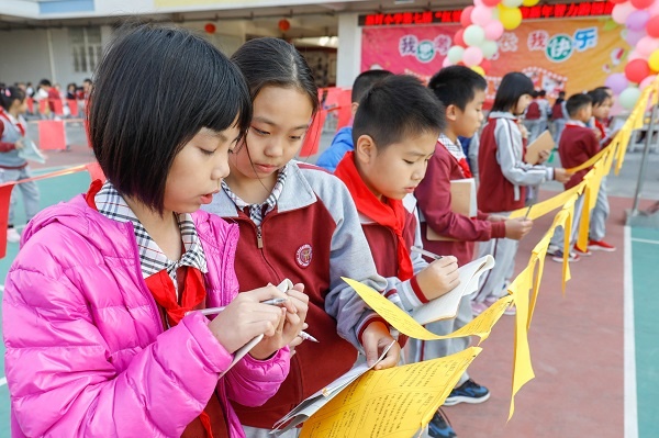 2019年12月27日下午,三乡镇新圩小学举行了第六届迎新年智力游园活动。香樟园、羽毛球场、凤凰广场处处欢声笑语,红红的题目单和同学们的脸庞交相辉映,犹如节日的盛会。