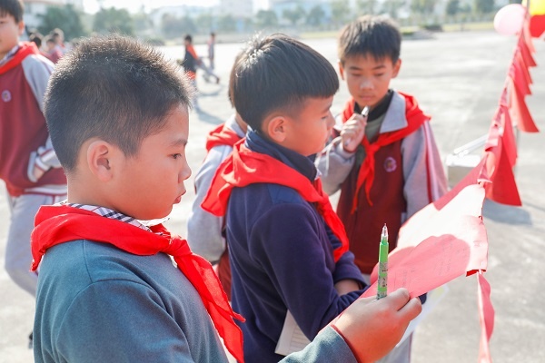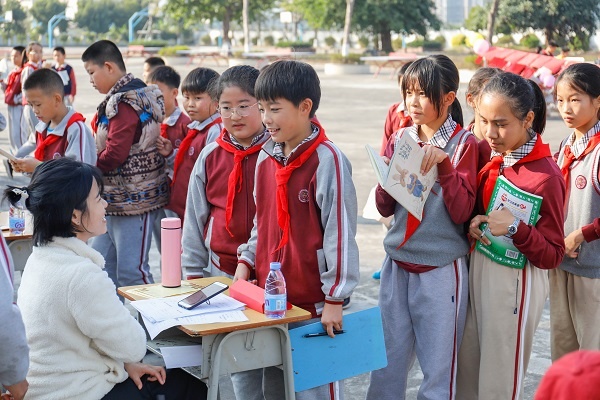 兑奖区的级长和家长义工们也忙得不亦乐乎。同学们根据记录单上奖章数选择自己喜欢的书籍或文具。他们抱着奖品喜滋滋的样子感染了周围的人。接近3:50活动结束,同学们回到教室按捺住激动的心情聆听朱校长的总结。班主任登记每人获得奖章个数及班级总数,教导处收集数据以班级平均数评出各年级的“智慧班级”。