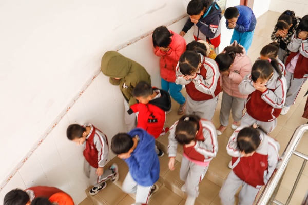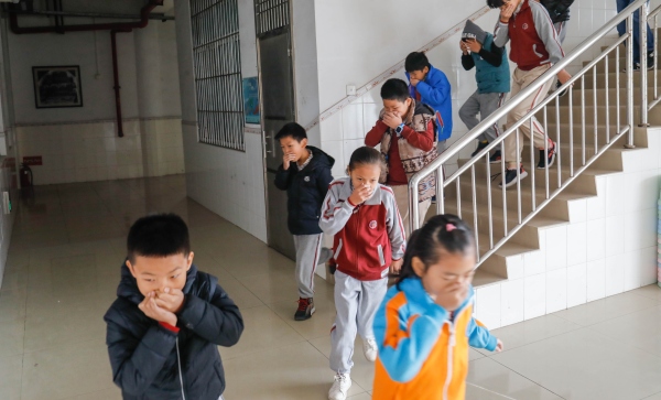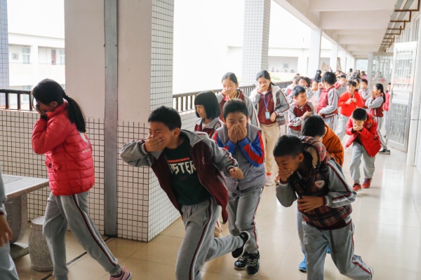 活动开始前,各班主任召开动员大会,阐述安全演练的重要意义,讲明演练的程序、内容和纪律要求,并为学生讲解了紧急疏散时的常识,清晰的撤离路线以及学生应该弯下腰慢跑,同时用手帕等捂住口鼻的动作要求,并且告知学生不能相互拥挤、不大声喧哗,保持安静,有序撤离,避免踩踏事件的发生。同时,学校还在各层楼梯以及危险处都安排了疏导指引员,对学生疏散进行疏导和情况登记。
