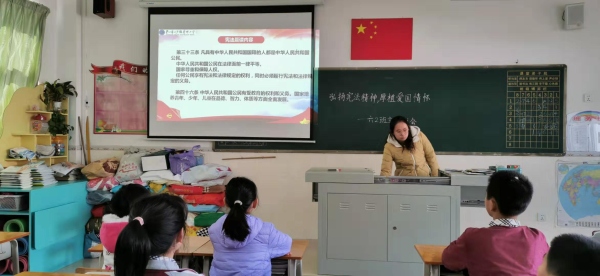 12月4日上午利用主题班会课给全校学生进行宪法学习教育,首先前10分钟由德育主任陈文丽老师对什么是宪法日,宪法的重要性进行讲述,然后由班级组织班级学生观看今天在全国举行的宪法晨读活动的视频,先后听了澳门及重庆两位学生的宪法演讲,听了教育部副部长的讲话,给青少年提出了四点希望,明确了纪律的重要性,教育学生从小就要知法、懂法、守法,做守纪律的好公民,严于律己。之后由各班班主任带领学生进行宪法朗读,朗朗上口,声音响遍整个校园,最后听着明快、悦耳的《宪法伴我成长》这首歌结束本次主题班会课。在活动过程中,学生对宪法有了一些了解,即使低年级孩子还是朦胧的,但是至少知道法于国家、社会、学校,于自己的重要性。