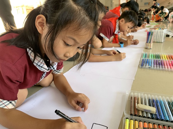 9月6日下午,新圩小学开展“百米画卷绘童心,共筑七彩中国梦”活动。