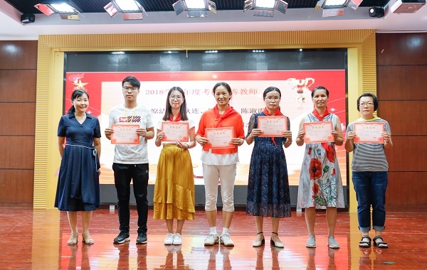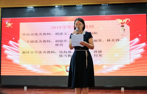 主题队会首先为优秀教师举行了颁奖仪式。先后颁发了“2018学年优秀教师”、“2018学年年度考核优秀教师”、“2018学年德育考核先进荣誉”、“2018学年教学先进荣誉”等奖项。肖志红校长和朱华春副校长为获奖教师们颁发了奖状,一份份金灿灿的荣誉,使教师们备受鼓舞。