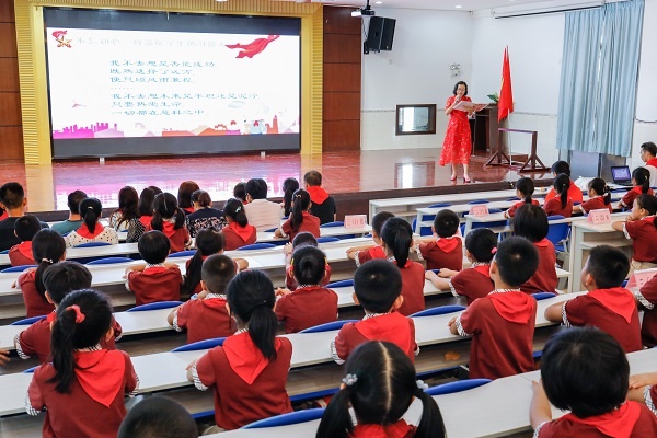 9月10日第四节课,大队部举行了“红领巾颂师恩,寻找教师最美那一刻”主题队会。各中队代表齐聚阶梯教室,其他队员在教室观看随着直播系统在教室参加活动。