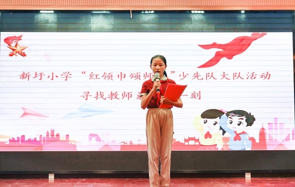 第35个教师节来临之际,新圩小学少先队大队部开展了“红领巾颂师恩,寻找教师最美那一刻”少先队大队活动。