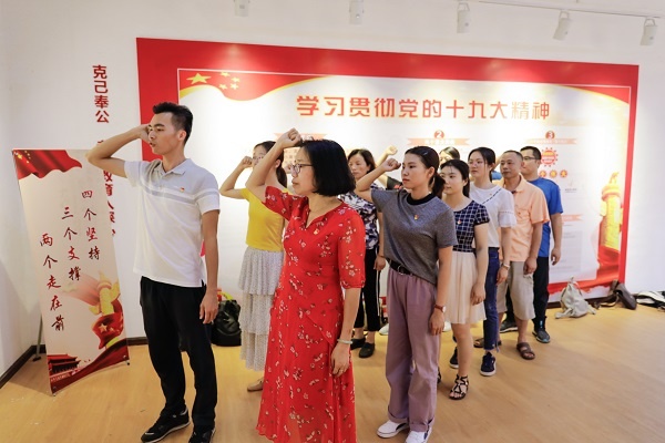 在郑志勇同志的带领下,党支部一行还来到了桥头学校旧址,兴致勃勃地参观了桥头村党建文化宣传室和反腐倡廉教育室。在反腐倡廉教育室里,全体党员举起右拳,重温入党誓词,向党表明“不忘初心,牢记使命”的决心。