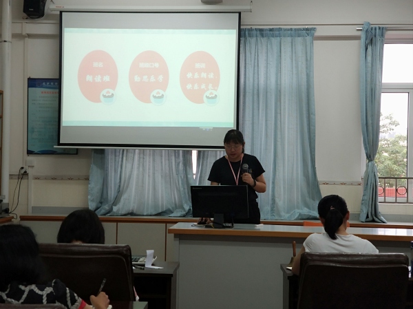在三四年级汇报中,为了更好的让学生学好汉字,做有根的中国人,三(1)班建设一个与学校特色一脉相承的“书法”特色班级——翰池小荷,志在让学生志于道,据于德,依于仁,游于艺。而在同一年级的三(3)班为营造一个诗香飘逸的文化氛围,让学生感受中华传统文化的博大精深,特此以“诗歌”为内容的特色班级,并举办了独具特色的第一届“诗全诗美”杯硬笔书法比赛以及第一届“诗全诗美”杯诗歌朗诵比赛,依此让学生徜徉在文学殿堂里。在四年级中四(1)班则以书籍为构想,从七彩阅读、七彩小组、读书签千百遍等活动中,向学生渗透阅读的乐趣,让学生在特色活动中爱上阅读。