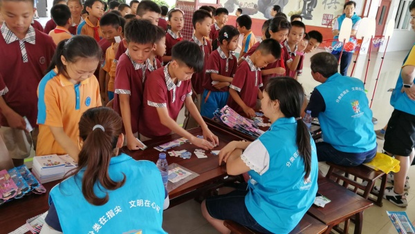 2019年6月21日下午,新圩小学开展了以“爱护环境,保护地球”垃圾分类进课堂教育游园活动。本次活动参加的对象是三年级的全体学生,主要分两大部分进行。第一部分是在阶梯室听垃圾分类知识教育讲座,第二部分是集中笃行堂进行有奖问答游戏活动。