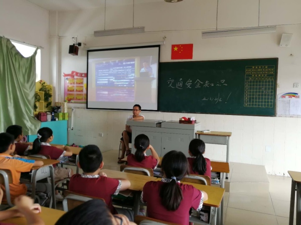 2019年6月12日早上第四节课,新圩小学开展了交通安全知识讲座活动,全校师生参与了本次学习,四年级在阶梯室,其他班级学生通过校园直播方式观看,由班主任负责组织学生,年级组长巡查并反馈整个活动过程。