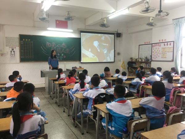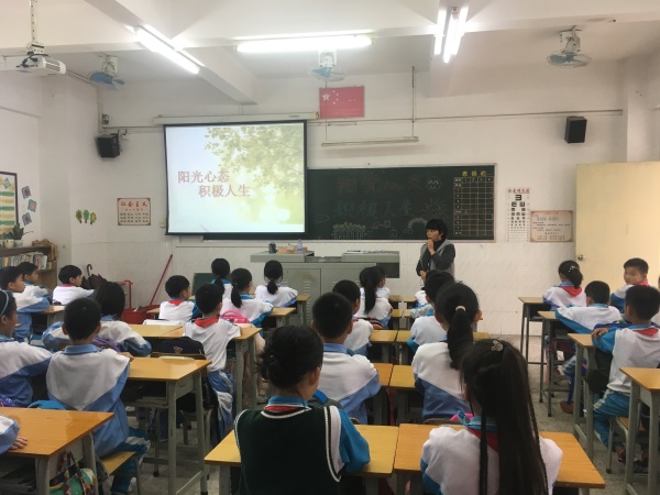 学校培养了一个又一个积极乐观的学生。你瞧,三、四年级的学生正在认真聆听《阳光心态》主题班会的内容。