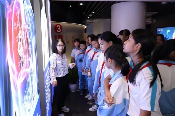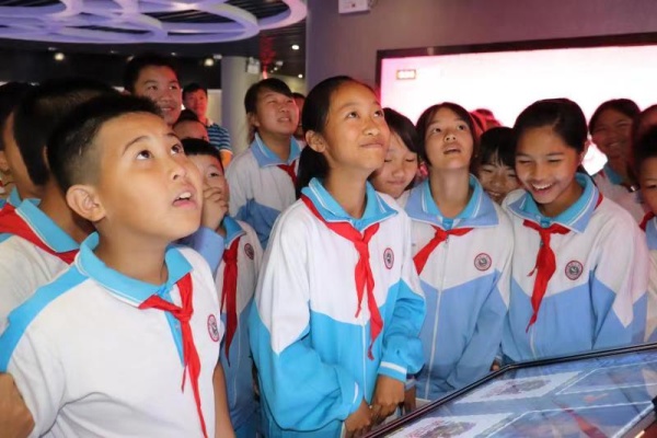接着,在工作人员李女士的介绍和带领下,学生有序地进入了场馆参观。一进门,就是孙先生的塑像,和关于销烟的事迹,原本有热闹的氛围,一下子变得深沉严肃起来。同学们认真地聆听着导游姐姐的介绍。“这是关于禁烟的主张和人物,都有谁呀?”同学们你一言我一语地回答着。“这是这些就是现在最新型的毒品,这是冰毒、大麻、K粉、摇头丸……等等”同学们听得认真、看得仔细,还不时地发出阵阵感叹:“哇,这个东西要是谁占上了,就要他的命!”