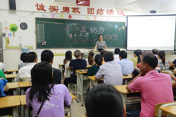 首先,各班班主任与家长在课室进行了面对面交流。班主任给各位家长介绍了班级基本情况、展示了近一周学生在校的学习生活影像、班级任课教师的情况,主动沟通了近阶段需要家长配合的事项。通过面对面的沟通交流,消除了家长与班主任、副班主任之间的陌生感,增强了家长对教师和班级的信任感,强化了家长对班级、对孩子的信心,为以后家校协助奠定了良好的基础。