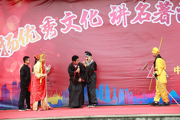 参加本次决赛共有十二支队伍,选手们表演人数之多,服装、道具鲜艳,吸引观众眼球,精准有趣的语言、真挚的感情、惟妙惟肖的表演,将一个个名著故事中蕴涵的大道理演绎的精彩绝伦,整个比赛赢得了在场众的一阵阵雷鸣般的掌声,选手们的精彩表现为观众奉献了一场视听盛宴。经过一番激烈的角逐,二(5)班的节目《活着》,二(10)班的节目《三打白骨精》,二(6)班的节目《智取生辰纲》获得一等奖。