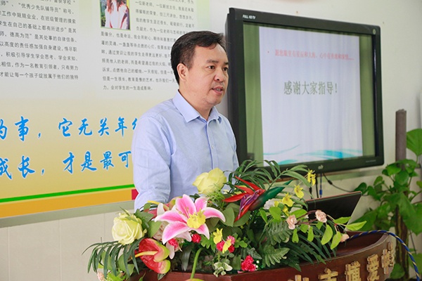 随后,由文体教育局梁添带书记发言。梁书记对“寻道”班主任工作室的成立表示祝贺,并指出:班主任工作室的成立对于提升学校班主任队伍管理能力的重要性,希望班主任工作室各成员能够明确职责,传播先进的班级管理经验和方法,充分发挥班主任工作室的示范、引领、辐射、指导作用,当好学校班主任队伍中的“发动机”。