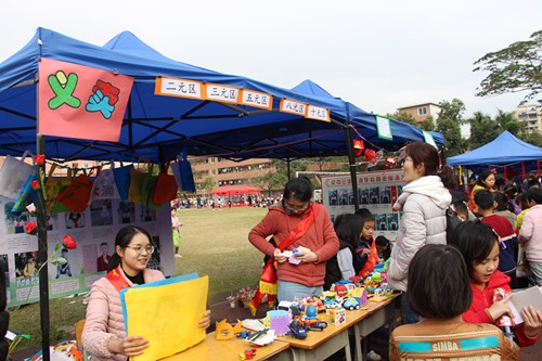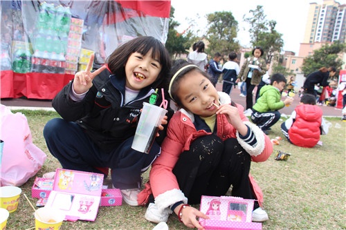 每个人脸上都洋溢着开心幸福的笑容,广播里播放着欢快的歌曲,早已选购好心仪物品的小伙伴们围坐在操场上相互分享,或是奔跑着放风筝,或是摆弄起自己的小动物,整个活动操场上空都飘满了孩子们欢乐的笑声,处处洋溢着迎春嘉年华的火热欢乐。
