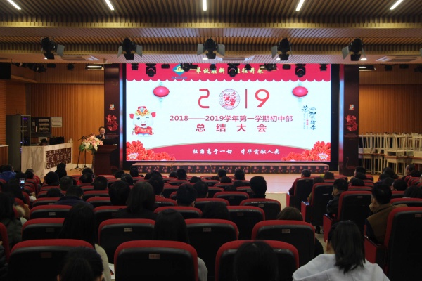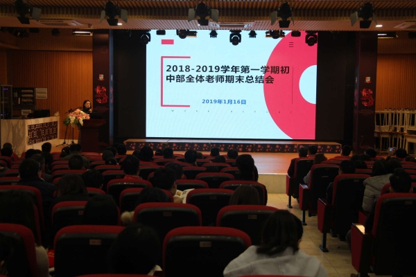 1月16日下午,经过一个学期的忙碌,纪中三鑫双语学校初中部2018——2019第一学期总结大会在学校报告厅如期举行。会议由初一年级校长黄建军主持,初中部全体管理人员和老师参与了本次会议。