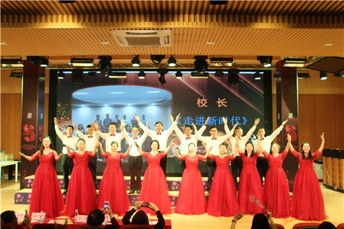 经过初赛、复赛晋级决赛的23个节目轮番上演,给现场观众们带来了一场美妙的视听盛宴。平日里忙碌于严谨的教学、科研和管理的教职工们,在声动三鑫的舞台上化身歌者、舞者,专心演绎自己。或是《飞得更高》、《二月十四》、《“鑫”福一家人》的自弹自唱,或是讲述男女三生三世令人动情的爱情故事的《香蜜沉沉》,或是二年级才女贺敏老师亲自填词的《中山》,唱出了中山人对这片土地的热爱,或是深切感恩母爱之伟大的《天之大》和《天亮了》,或是《滚滚长江东逝水》、《打靶归来》、《精忠报国》、《祖国,我永远热爱您》更是唱出了三鑫人意气风发、积极向上的精神风貌,回报国家和社会的决心。由行政代表组成表演嘉宾演唱的《走进新时代》把现场的气氛带到了顶点,观众的尖叫声、应援声冲破了报告厅的天花板。在以三鑫教育集团沈伟忠校长为领头人的行政人员的领导下,带领着三鑫开辟新章程,越来越好。
