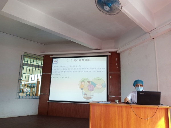 校医陈小斯医生主讲本场培训,学校办公室陈媛媛主任主持培训活动。陈医生首先从新冠病毒的流行病学知识讲起,讲到病毒的传染源、传播途径、表现症状及防控方法,然后引申到校园的疫情防控,深入地剖析了应该如何科学防控新冠疫情。