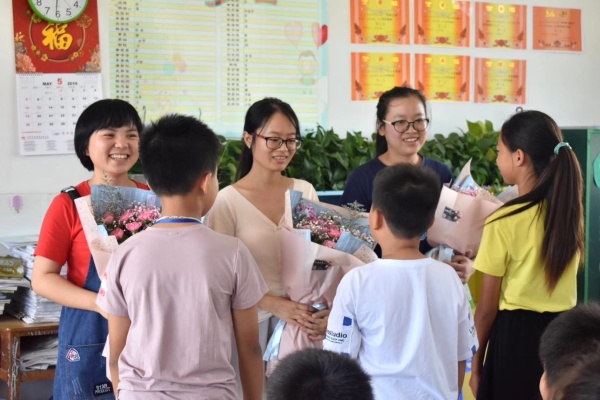 体验活动结束后,班主任巫慧珍老师、语文张艺老师、德育处熊钧俊主任为各位“小小老师”进行了点评并颁奖。最后,三位社工还为孩子们准备了鲜花送给自己亲爱的老师。