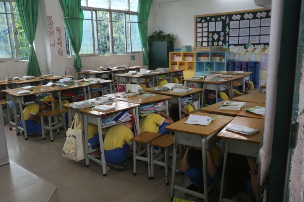 演练前,德育处首先制定了详细的演练预案,定岗定责,任务落实到个人,并在全体教师例会上做了明确的安排和强调。然后组织全校班主任利用班会课时间,举行了“防震减灾”主题班会课,并将5月12日-19日定为“防震减灾主题宣传周”,通过红领巾广播站,学校微信公众号等方式,对老师、学生和家长们进行了应急避震、疏散逃生、震后卫生、疾控防疫等方面知识指导和普及,让学生们懂得应急避震、应对火灾、震后逃生等方面的正确方法,并熟悉本班的逃生路线。同时强调了演练是模拟性的练习,避免引起不必要的恐慌。