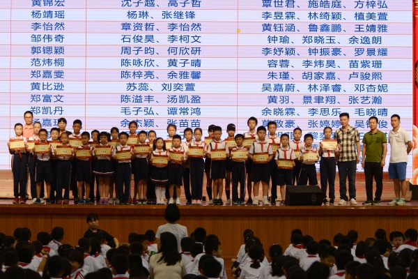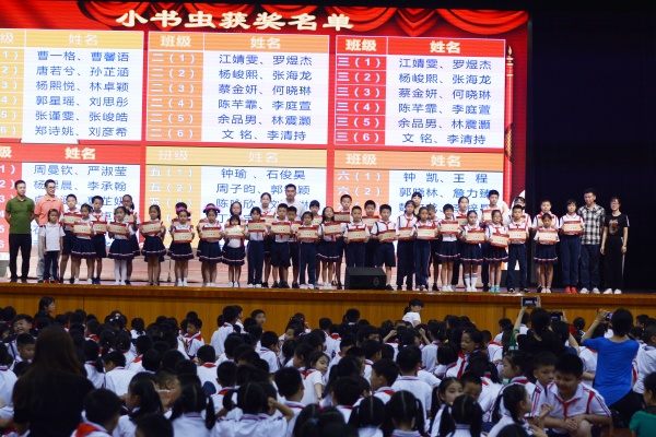 在节目汇演之中,穿插了两次表彰。既表彰了经典诗歌书获奖的同学,也表彰了第十九届读书节的“小书虫”。