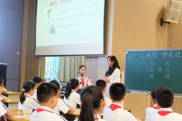 其中,四至六年级的课例比赛则是围绕社会主义核心价值观关于公民个人层面的价值准则“诚信”展开。4月25日,学校承办了班会课比赛的最后一场,由来自不同市镇学校的6位老师展示了6个课例。课例选题精准,设计新颖,内容丰富充实,活动形式多样,围绕学生的生活学习实际提出问题,引发思考,展开讨论,触动心灵,全员参与,重点突出,从认知、感悟、践行三个方面构建了学生知行合一的班会活动模式,获得了评委专家、老师们的一致好评。