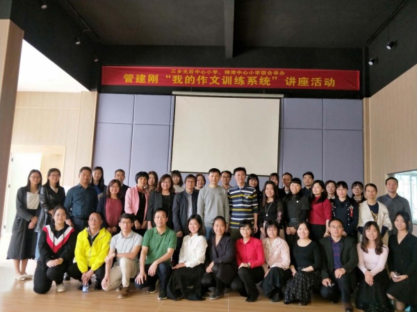 接着,光后中心小学语文科组长刘映伦老师对光后小学写作教学研究成果进行了展示,如智慧屋工作室、作文派工作室等写作研究进展。神湾中心小学语文科组长黄绍平老师针对后进生的辅导、单元习作与专题习作的有机整合等问题向管老师提出了目前老师们的困惑,引起了大家的思考。管建刚老师以幽默风趣的语言,深入浅出地为大家答疑解惑。