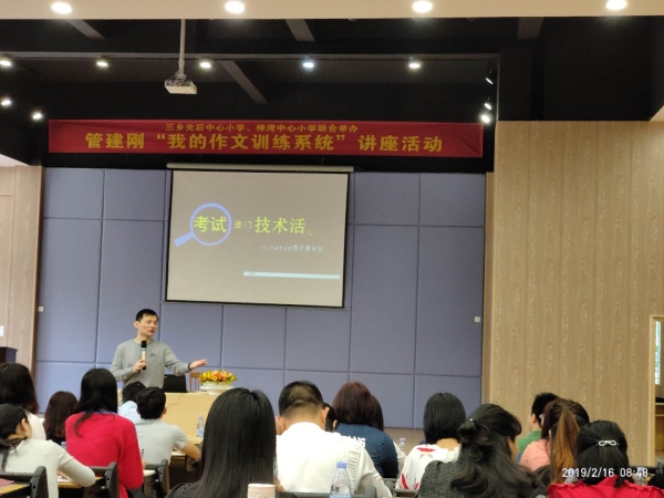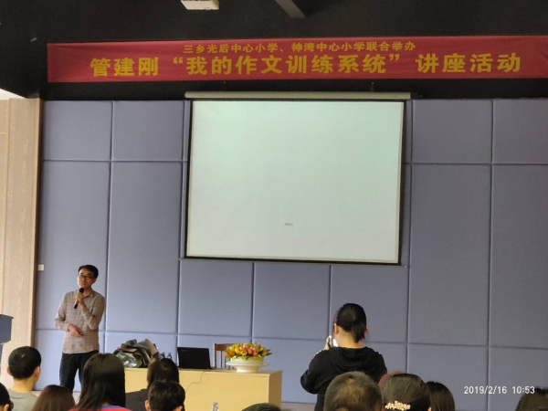 一年之计在于春。2019年2月16日上午,新学期来临之际,三乡镇光后中心小学携手神湾镇中心小学,在光后百年讲堂迎来了新学期第一位专家——管建刚老师。管建刚老师给大家带来了一场精彩的经验分享会,三乡镇文体教育局教研员王建国主任作为嘉宾出席了本次活动,全镇各小学语文教师代表共260多人聆听了这场讲座。