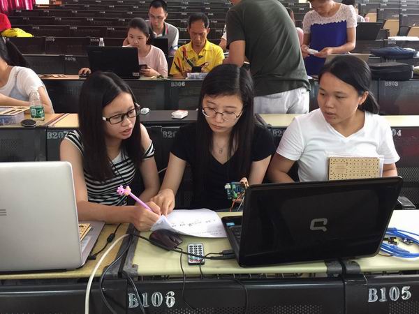 为提高区中小学开展创客教育的实施能力,培养优秀创客教育教师,进一步推进创客教育在全区中小学的普及与开展,顺德区教育发展中心举办了第二期创客教育种子教师培训,分别于745日和1011日在大良顺峰中学和勒流职业技术学校开班,全区共有200多名中小学教师前来参与。培训的主要内容是开源硬件和米思齐基础入门。