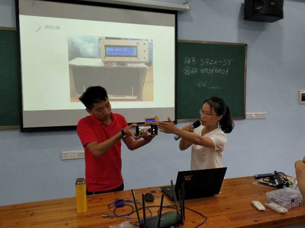 经过一天的基础知识学习,第二天下午,分小组进行项目制作和路演汇报。各个小组的老师都使出浑身解数,把两天培训中所学到的技术以及团队的创意发挥得淋漓尽致,在硬件有限的条件下实现各种有创意的创客作品,路演汇报环节精彩纷呈,充分展示了我区在创客教育的师资潜力。