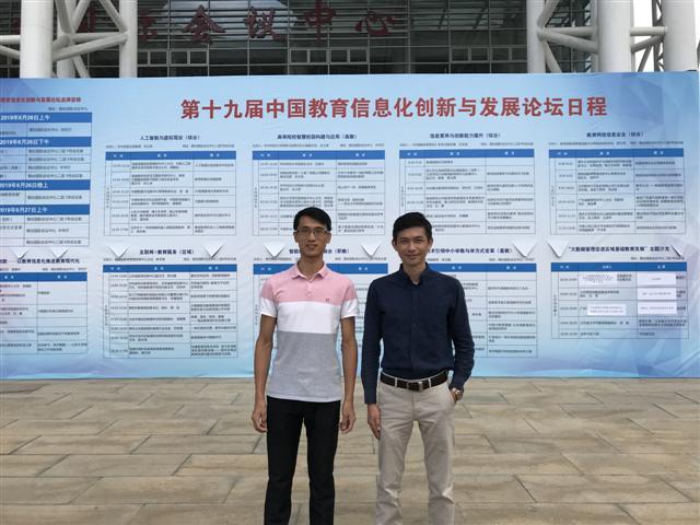 2019年6月26日-27日,第十九届中国教育信息化创新与发展论坛暨教育信息化应用成果展示交流活动,在山东烟台国际博览中心举行。应广东省教育技术中心邀请,我校教务处蓝高龙副主任带领师生团队及作品,作为广东省参展单位进行展示与交流。