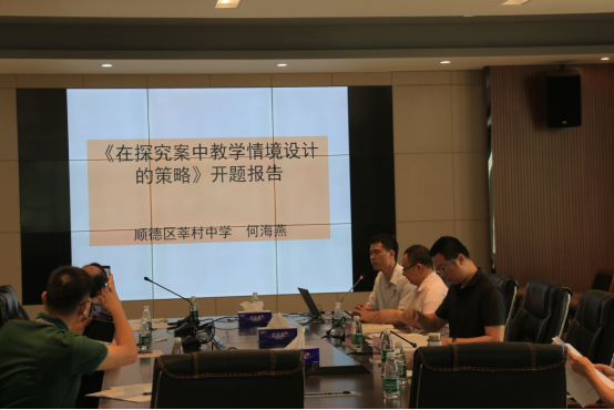 莘村中学何海燕老师展示了《在探究暗中教学情境设计的策略》开题报告