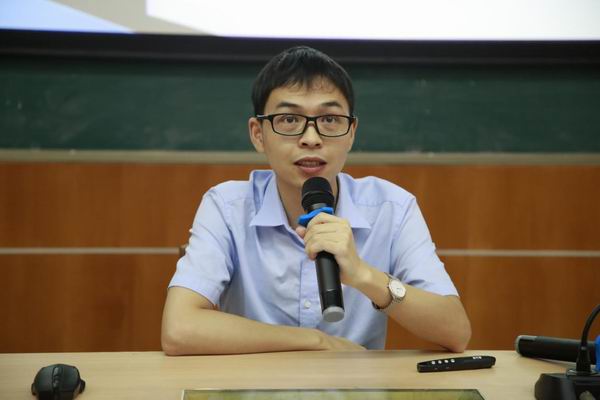 第三位分享的是华侨中学的郑 教师。郑老师以《思教学痛点,行成长之路》为题,以自己参加广东省实验创新设计比赛和顺德区青年教师教学能力大赛的参赛经历为例,从教学痛点出发,提出“创新”思路,并着手查阅文献、求助导师,从而实现专业成长的长足发展。