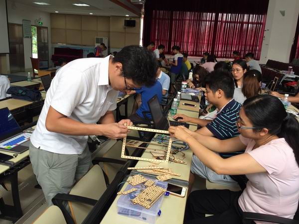为提高区中小学开展创客教育的实施能力,培养优秀创客教育教师,进一步推进创客教育在全区中小学的普及与开展,顺德区教育发展中心举办了第二期创客教育种子教师培训,分别于7月4、5日和10、11日在大良顺峰中学和勒流职业技术学校开班,全区共有200多名中小学教师前来参与。培训的主要内容是开源硬件和米思齐基础入门。