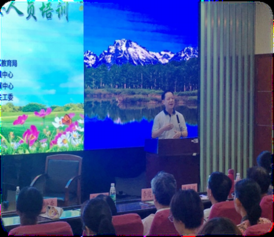六月二十六日上午,佛山市教育系统关工委人员培训(顺德专场)在区教育发展中心一楼阶梯室举行。负责培训的是市关工委副主任、市教育局关工委主任马健超和市教育局关工委常务副主任吴钟秀等一行七人。培训内容一是“不忘初心,牢记使命”――先进关工委工作心路历程分享,二是“规范化家长学校”建设与“朝阳读书”活动开展的业务培训。区教育局关工委全体成员、各镇街教育局关工委成员以及全区各中小幼“规范化家长学校”建设主管行政代表近二百人参加了培训。