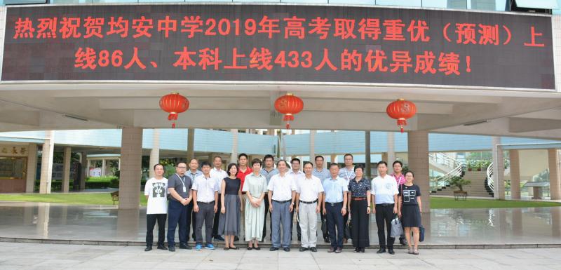 顺德区教育局闵乐萍局长、均安镇教育局劳国明局长、顺德一中交流团队与均中行政队伍合影