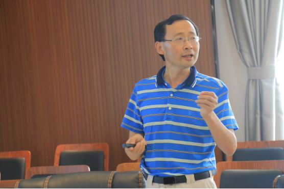 程益贵老师对学校如何高效开展校本课程、落实地理核心素养的培养途径,做了精彩的交流汇报,从校本课程的设计理念、国内外文献的收集、国外关于校本教学教材介绍等多方面,对学校开展校本课程提出了宝贵的意见。