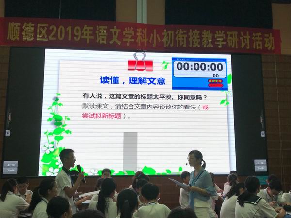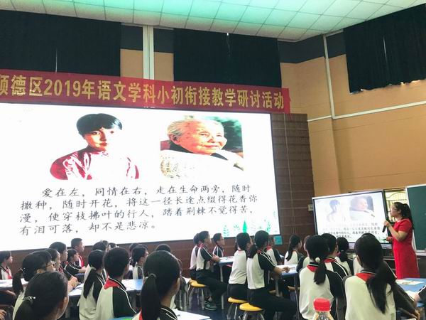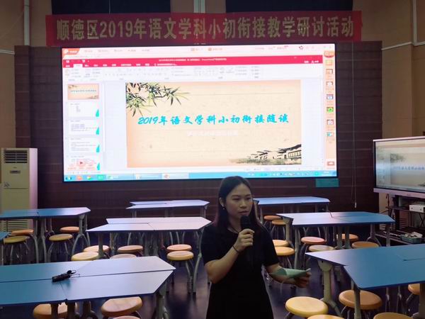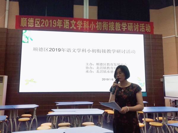 为推进全区域联合教研工作,创新教研方式,加大小学和初中语文教学衔接工作力度,探索提升学生语文学科核心素养的有效路径,切实提升语文教学质量,6月12日,由顺德区教育发展中心主办,北 镇教育局协办的顺德区2019年语文学科小初衔接教学研讨活动在承德小学报告厅举行。