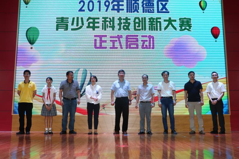 活动首先播放了“顺德区青少年科技创新大赛优秀作品回顾”PPT剪影,随后区科技局、教育局、科协领导、佛科院教授、辅导员代表、学生代表上台,共同按下大屏幕上的启动按钮,标志着2019年顺德区青少年科技创新大赛正式启动。