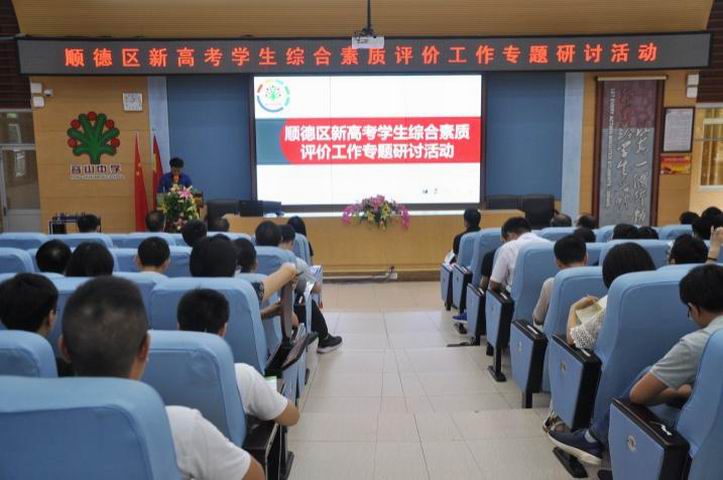 为进一步促进普通高中综合素质改革,推动顺德区普通高中学生综合素质评价工作的开展,深刻理解、正确把握综合素质评价的内涵和要求,扎实做好综合素质评价相关的工作,全面落实立德树人根本任务,促进学生全面而有个性地健康发展。2019年6月13日上午,顺德区新高考学生综合素质评价工作专题研讨会在容山中学顺利举行。广东省教育院研究员席春玲博士、顺德区教育局基础教育科吴俊副科长、顺德区教育发展中心张海洋副主任、学生成长指导室吴有朋、谭淑雯专干以及各普通高中负责学生综合素质评价工作的学校行政、级长和系统管理员共70余人参与此次研讨会活动。