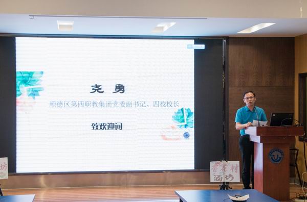 启动仪式上顺德区第四职教集团副书记、四校校长尧勇致欢迎辞,尧校对前来参加活动的领导嘉宾和老师表达欢迎和感谢,并介绍了 琚职校黎明“职场大语文”工作室的工作情况。