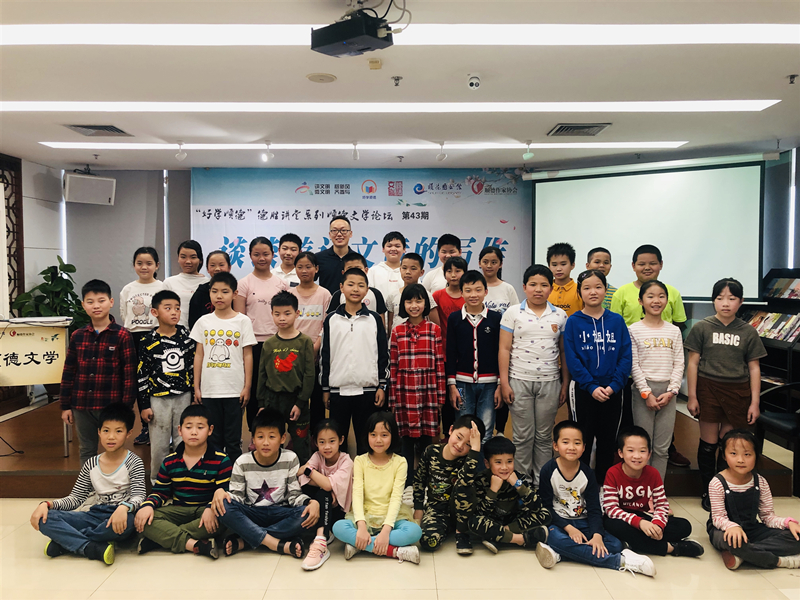 陈奇周老师与参加讲座的小读者们合影
