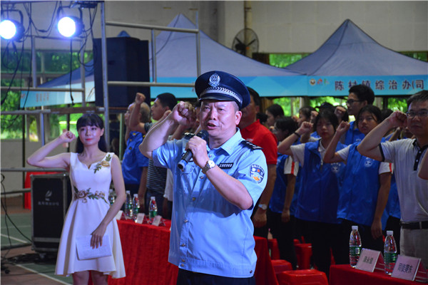 陈村镇党委委员、陈村派出所所长刘剑飞,陈村镇综治办常务副主任龚永健,陈村镇禁毒协会会长单位、广东永通起重机械股份有限公司董事长叶宏洪,陈村职校副校长司徒葵东,陈村镇各职能部门代表以及陈村职校智能制造学部全体学生等1000余人参加了本次活动。