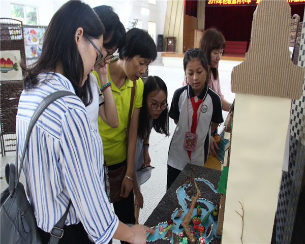 活动在伦教街道小学美术中心教研组组长邝宝均老师主持下,首先参观了“荔村小学美术特色作业展示”,到会的老师们在学生的引领和讲解下在礼堂进行观展。此次展出的美术特色作业内容丰富多彩,形式多种多样。有装饰味道强的重彩画,有别具匠心的拼贴画,有活灵活现的手工纸花,有书写端正的手抄报,还有创意无限的手工立体作品和橡皮泥作品等等,内容丰富的作品彰显了老师们设计的丰富与巧妙,更凸显了学生们的认真努力和奇思妙想。在展览上,荔村小学的学生们清晰大胆地介绍自己的作品和回答老师们的问题,同时认真地倾听老师们的建议。老师们一边认真地观看,一边时不时拿出手机拍照记录,作为自己今后辅导的参考。