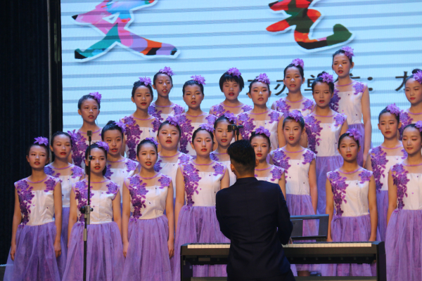 我校合唱队姑娘们穿着淡雅的裙装,自信优雅地站在表演台上,指导老师唐小林风度翩翩地弹奏钢琴,“啊,卓玛……你像一只自由的小鸟歌唱在那草原上,你像春天飞舞的彩蝶,闪烁在那花丛中……”丰华中学合唱队用飘逸灵动的声音演绎了一首《卓玛》,歌唱声如同歌词:像一杯甘甜的美酒,醉了太阳,醉了月亮!陶醉了在场所有人!紧接着,场景从辽阔飘逸的草原转移到迷蒙月光下的果园里,合唱队员们一首《葡萄园夜曲》,唱出了宁静的夜空下异乡人对家乡葡萄园的无限思念。优美的旋律、独特的唱风、天籁的声音以及师生精准的配合,令所有评委和观众如痴如醉,啧啧称赞。最终获得初中组唯一一个一等奖!唐小林和全波两位老师获得“优秀指导老师奖”称号!真是可喜可贺!