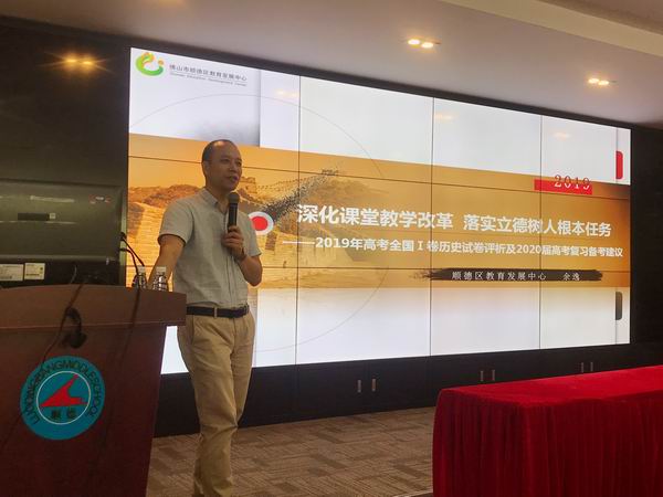 2019年8月13日上午,以“深化课堂教学改革,落实立德树人根本任务”为主题的顺德区高三历史一轮复习研讨会在顺德区罗定邦中学举行。会议由区教育发展中心教研室主任、历史教研员余逸主持,全区高三历史教师近70人参会。