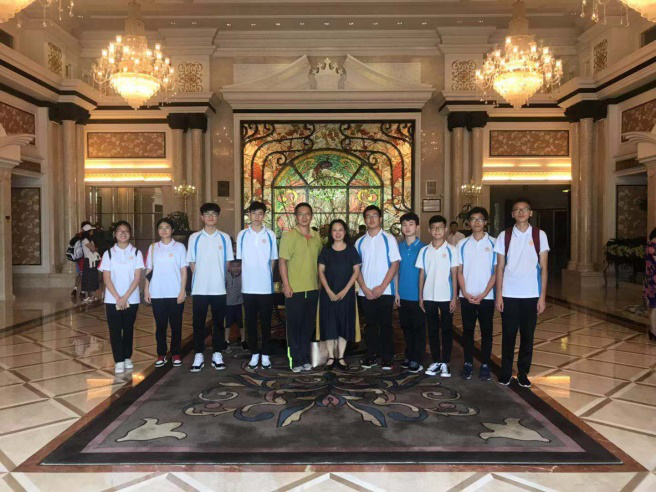 张映红副校长赶到队员就住酒店,给队员加油打气,提出:“务实、扎实、真实的交流,虚心、真心、热心的展现”的指导思想,希望同学们能够尽力展现新时代侨中人的风采。