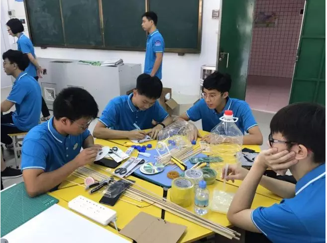 今天小组分工有序的进行STEM项目制作:橡皮筋动力小车和环保时装。在这项活动中同学们的思想进行了激烈的碰撞,不当学到了很多书本以外的知识,提高了动手能力,最重要的是粤港澳三地的年轻人能够从各自的文化背景中找到不足和优势。