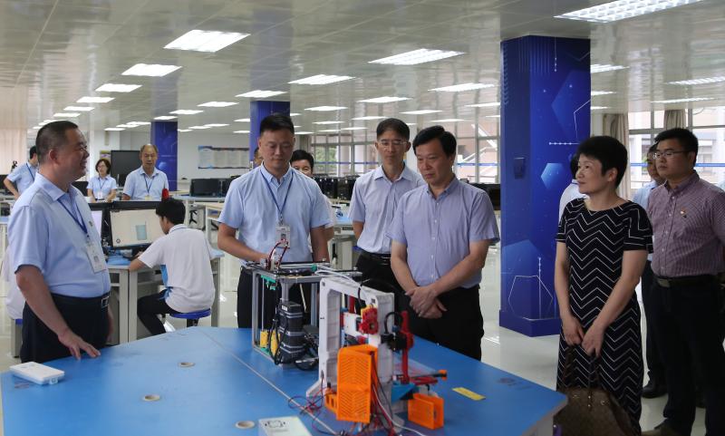 在勒流街道党工委委员、教育局局长林程、学校校级行政班子成员陪同下,一行人首先参观了学校3D打印与双创公共实训中心。