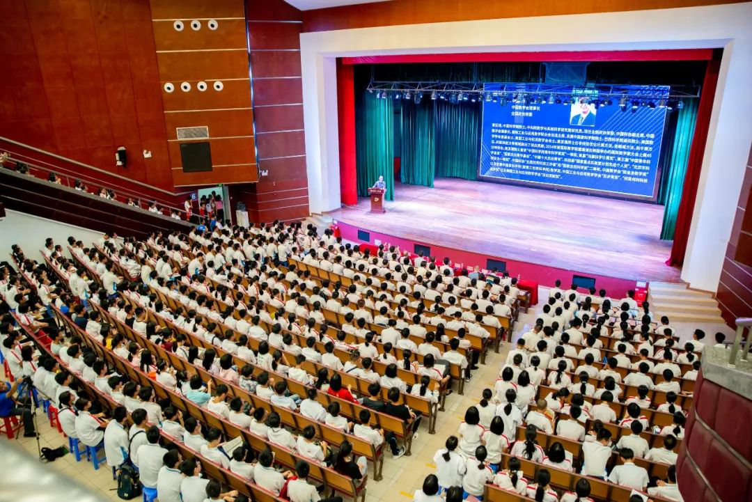 2019年9月22日上午9点半,顺德一中礼堂内座无虚席,气氛火爆。中国科学院院士袁亚湘走进一中校园,为顺德一中、国华纪念中学、李兆基中学等区内8所标杆学校1300多名师生作了题为《兴趣是学习的最强动力》的科普报告。